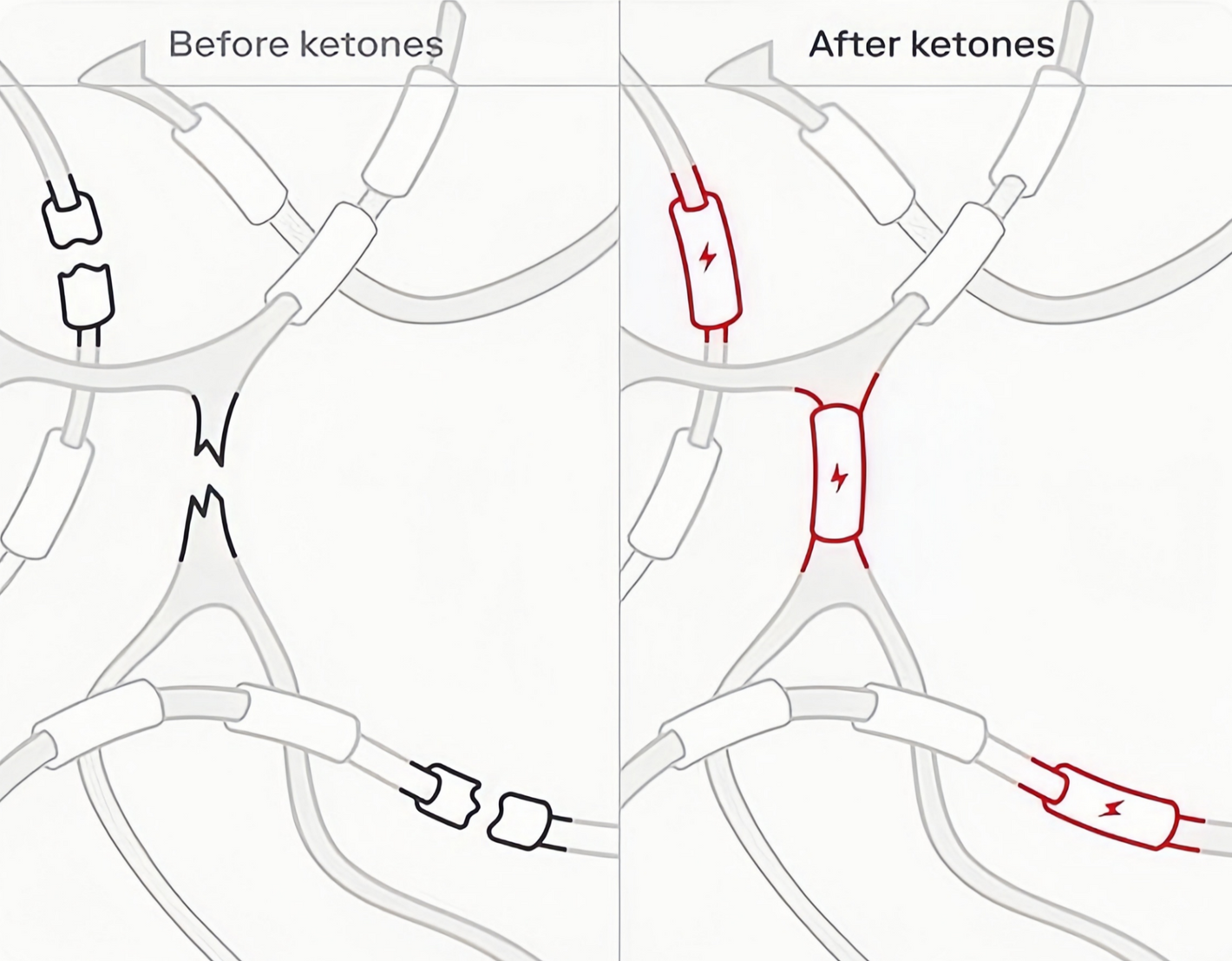 Ketones are an ultra-efficient fuel, especially for our brains. They’re evolutionarily designed to keep us razor-sharp and at peak performance between meals. But extended endogenous ketosis (e.g., keto diet) is hard to maintain long term. Often, it isn’t optimal for athletic or mental performance.