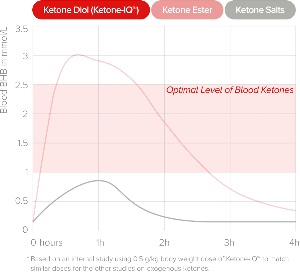 Enter Ketone Supplements (like Ketone-IQ). These are called Exogenous Ketones ("exo" meaning "external"). These supplements quickly deliver ketones to your bloodstream, putting you into ketosis within minutes without the need to fast, restrict calories or carbs, or exercise away your glycogen stores.